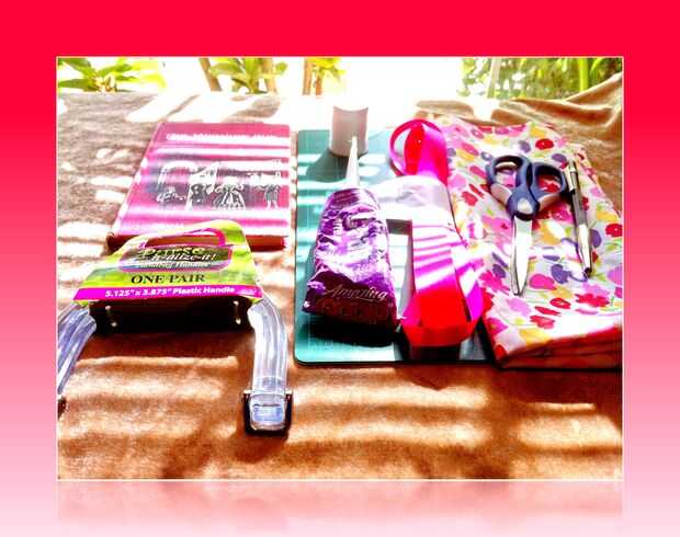 • · Una yarda de cinta para que coincida con su libro y tela y un botón (para usar como cierre de su bolso)