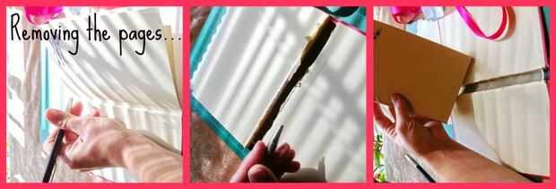 Eliminar las páginas del libro. Esto es un proceso delicado. Tomó mucho de alma buscándome hacerlo realidad. Me encanta leer y encantan los libros así destazar uno se sentía mal. Sé que este libro se utilizarán más de esta manera pero te duele para eliminar las páginas. Elige tu libro cuidadosamente!