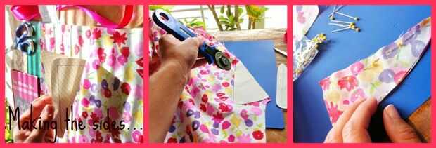 Hacer los lados. Este paso es donde puedes usar tus habilidades de costura! Mano coser mis lados pero puede utilizar una máquina de coser y ahorrar mucho tiempo. Coge la plantilla que hiciste anteriormente y doblar por la mitad. Ahora corta el pliegue. Colocar una mitad de la plantilla sobre la tela y cortar alrededor de ella dejando una media pulgada extra. Ahora hacer la otra mitad de su plantilla. Coinciden con los lados rectos y el pin. Cose por los lados rectos.