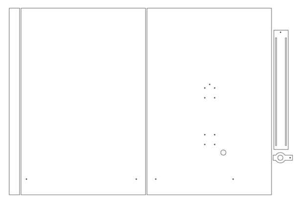 Descargar el archivo que has conectado y modificarlo como necesita para cualquier tipo de cortador del laser. Básicamente usted quiere cortar todas las piezas de masonite. Masonite es una buena opción porque es barato, sólido, y quema. Debe tener en cuenta que si las grapas que tienes no son el mismo ancho que los agujeros de mi diagrama o las pistas en el deslizador de partido necesitará ajustar los planes.