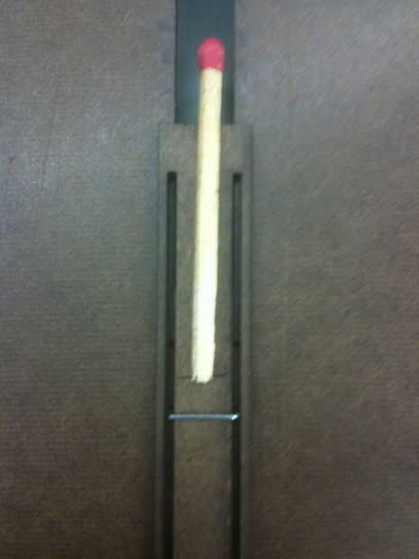 Después de fuera establecido, el partido de la cinta hacia abajo. Cortar el papel llamativo fuera de la caja de fósforos y con un cartón debajo de él, doblar por la mitad. Para probar la lámpara el partido (o más tarde realmente la luz), empuje en el papel de la llamativo cinta el papel hacia abajo, sostenga la captura y luego dejar ir. El partido debe sacar del papel impresionante y la luz en el fuego como en el video.