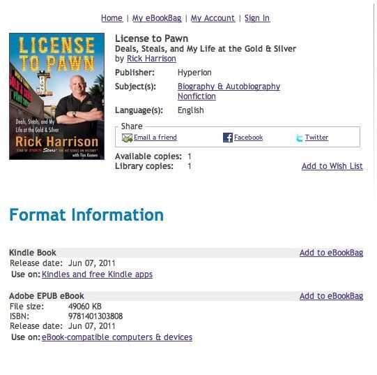 Aquí es el libro que elegí para el ejemplo-al hacer clic en ningún libro le mostrará más información sobre el libro. Lo primero que buscas aquí está el formato del libro está disponible en. Específicamente estamos buscando para KINDLE libros - incluso si usted está utilizando en un iPad, kindle los libros son mucho más fáciles de tratar que los PDFs y otros formatos. A continuación mira copias"disponibles" para que usted asegurarse de que usted puede descargar uno. Si no está disponible puede solicitar ser notificado cuando esté disponible.