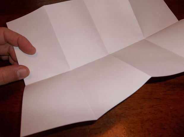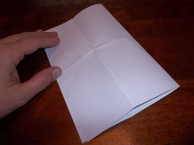 Luego dobla el papel en el medio utilizando un pliegue de "hamburguesa" a lo largo de la pareja actual de pliegues - es un par de arrugas porque de un lado se arruga para arriba, y la otra arrugada abajo.