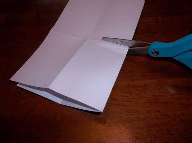 Toma tus tijeras al lado doblado del papel y cortar el pliegue a la intersección en el centro del papel.