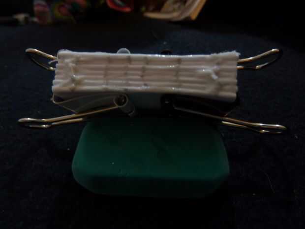 Apilar juntos otra vez y sujete ambos extremos que no están doblados con los clips de la carpeta. Pintar el lado doblado con Mod Podge. Déjelo secar. 3 capas deben ser finas.