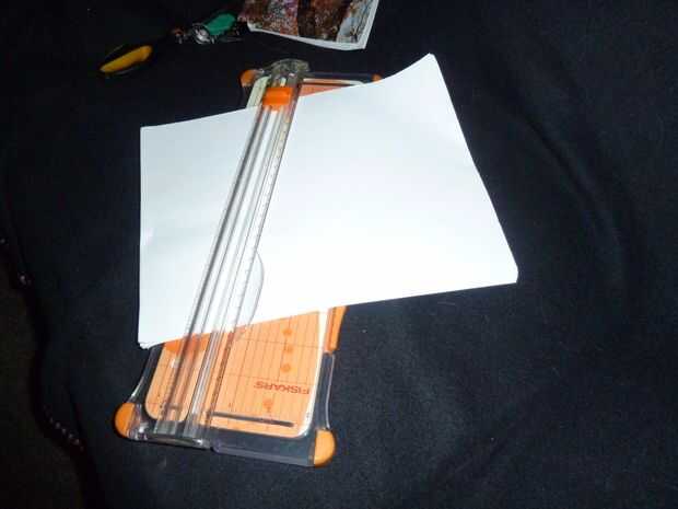 Tome su papel y su cortador de papel y cortar tiras que son ligeramente más pequeñas que la portada de su libro. Si no tienes un cortador de papel, puede utilizar la regla y el lápiz y cortar las tiras con el cuchillo. Sólo tenga cuidado y no cortarse. Cortar en rectángulos.