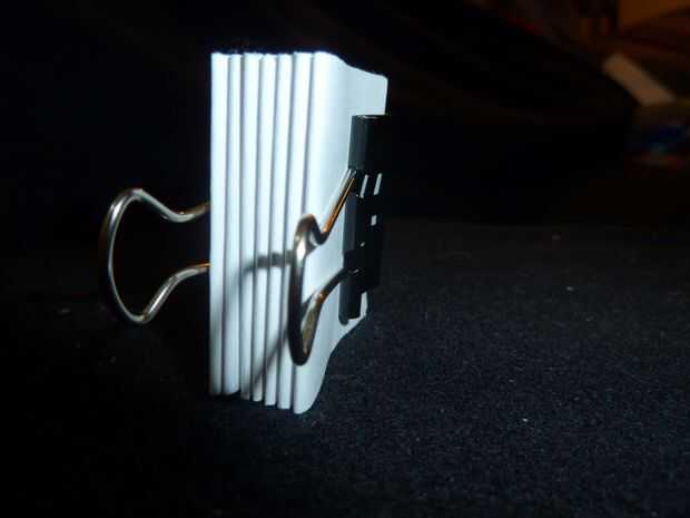 Ahora juntar sus firmas y mosquetonee el extremo abierto (el extremo que no está doblado) con un clip binder. Dibujar varias líneas por la parte doblada.