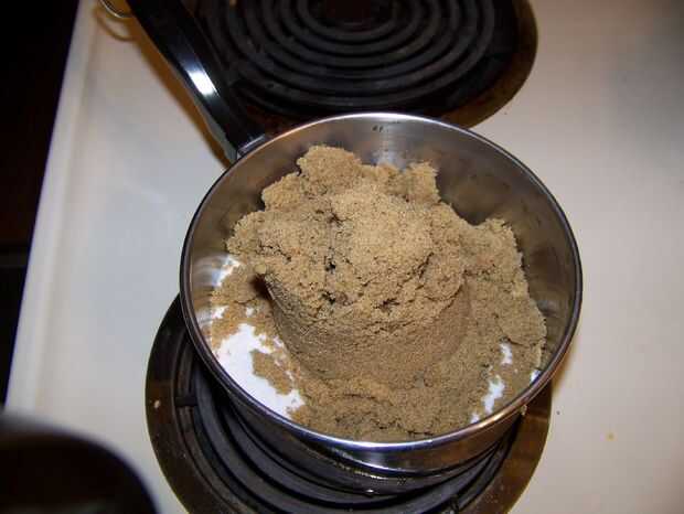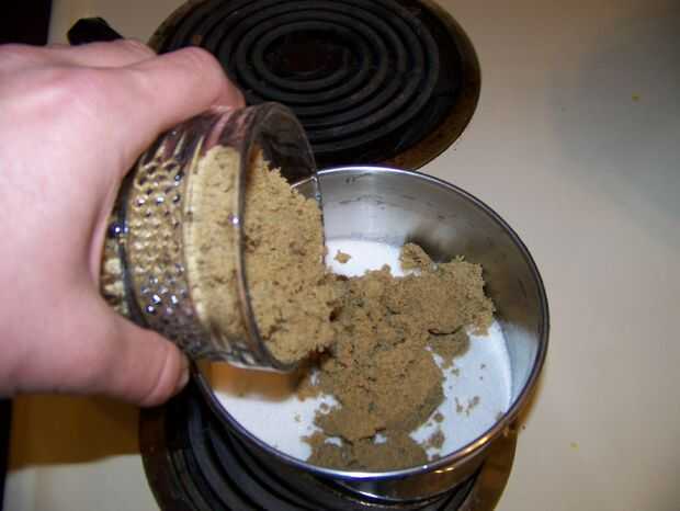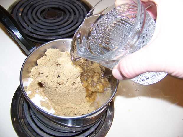 Al igual que el jarabe de vainilla, comenzar añadiendo azúcar partes iguales blanca, azúcar morena y agua, pero esta vez en una olla más pequeña. Una vez hecho, ponerlo en la estufa a fuego medio y revuelva con frecuencia. Es bastante fácil de hacer este paso al mismo tiempo que haces el paso tres.