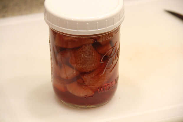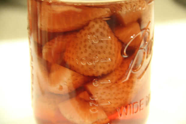 Llene la jarra con frutas y rematar con el alcohol. Luego deje reposar durante 2 días a la semana. Usted puede dejarlo a sentarse ya si así lo desea.