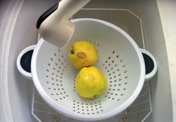 Lavar tus membrillos bien en agua jabonosa muy caliente. No desea que su licor tomando en cera o pesticidas, ¿te? Cuando se trata de lavar y esterilizar el recipiente, un recorrido por el lavavajillas debe funcionar bien. Si no es así, ejecútelo en quemaduras de agua caliente con jabón hasta que el agua salga limpia y la jarra está muy caliente al tacto.