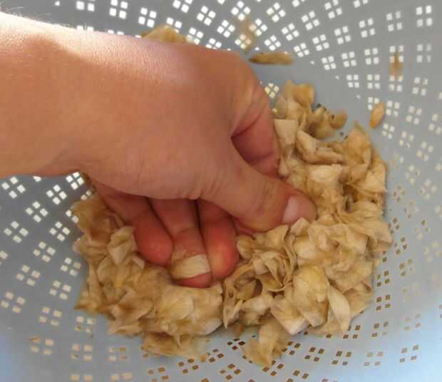 Después de algunas horas las flores habrá perdido su color y su aroma a la vodka. Ahora es el momento para quitar el resto de las flores.