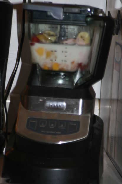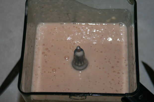 Primero que pones todo eso en la licuadora no importa lo que has puesto en primera. Esto hará que 5 tazas del batido.