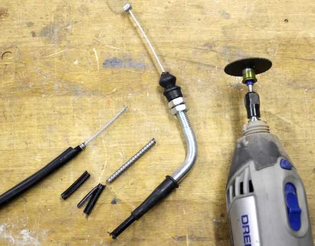 El cable del acelerador está diseñado para una moto y es de aproximadamente 4 pies de largo, mucho demasiado para nuestros pasos.
