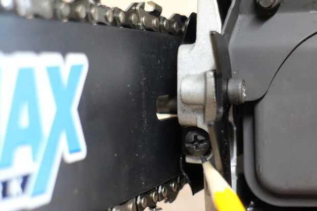 La cadena será enseñada por un tornillo de apriete cerca del brazo de cadena. Desenroscar el tornillo de tensión de cadena libera la cadena del brazo lo que le permite quitarse. También se pueden quitar el brazo de la cadena.