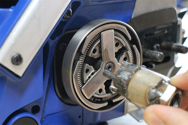 Girar el embrague de las agujas del reloj hasta que sienta que detener. El embrague está ahora listo para Desenroscar el eje del motor. Embragues varían dependiendo del fabricante, normalmente tienen dos o tres zapatos que empujan contra el cilindro externo, pero generalmente tienen el mismo aspecto y se eliminan de la misma manera.