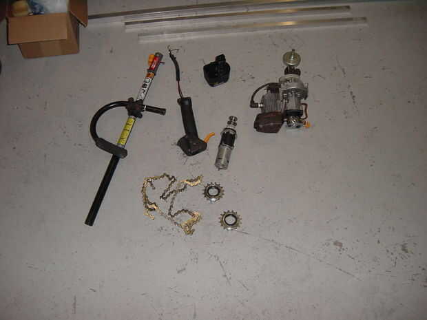 esto es una moto que mi hermano y yo instalado un motor de 47cc en. El motor es de ThatsDax, y yo les recomiendo que si quieres hacer algo como esto. La instalación del hardware tomó cerca de 2 días, corrección de error y ajuste fino otros 2 días.Con