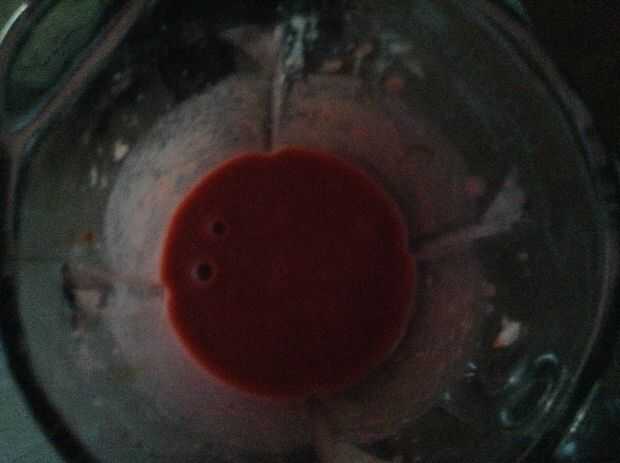 mi hermana y yo habíamos pasado la tarde preparando licuados de zanahoria.Muchos fracasados batidos más tarde que llegamos a estos dos:Su receta (fotografiado)"Regocijan de los amantes de la pasta" *Mezcla hasta liso:10 zanahorias5 fresas congel