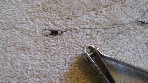 Primero que vas a conseguir su giro y atarla a una pieza de 15 pulgadas de la trenza de aproximadamente 12 pulgadas líder, usando el nudo abajo u otro nudo si lo desea. Si está usando un resorte giratorio por separado el cierre y la placa giratoria como se muestra en líder #1. Luego cortar el extremo de la etiqueta y el cierre de lazo en el otro extremo, cortar el extra y BOOM ya está listo.