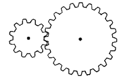 "Cuando dos engranajes de acoplamiento, y un engranaje es más grande que el otro, una ventaja mecánica se produce con velocidades de therotational y los pares de los dos engranajes distintos en una relación inversa."