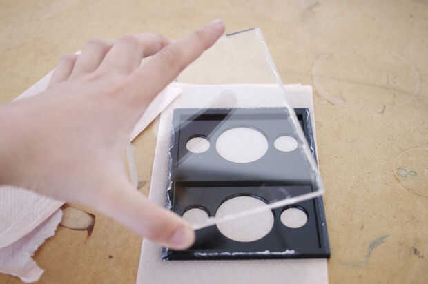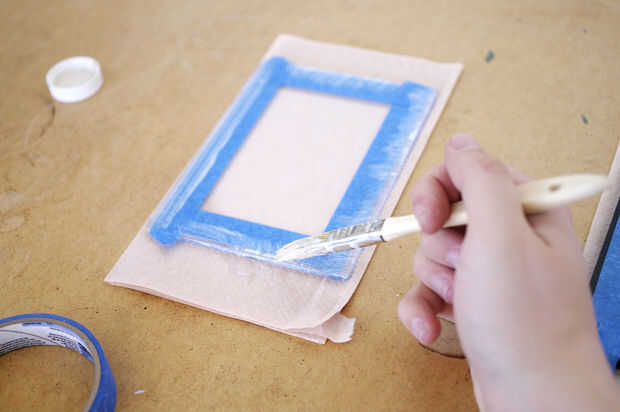 Cepillar el pegamento de contacto y espere que se seque. Una vez seco, despegue la cinta lejos.