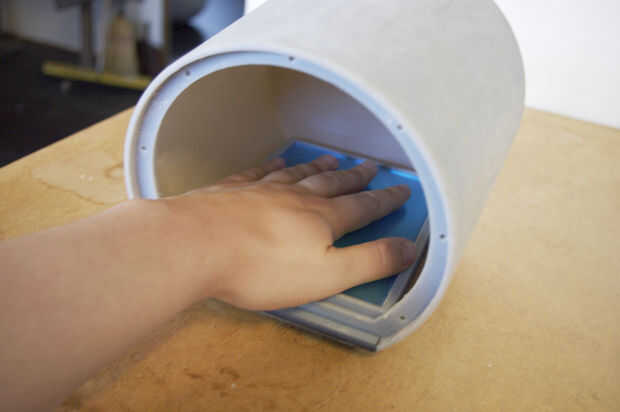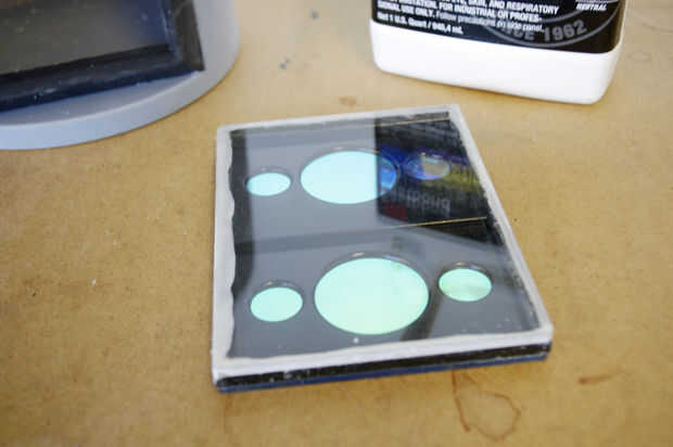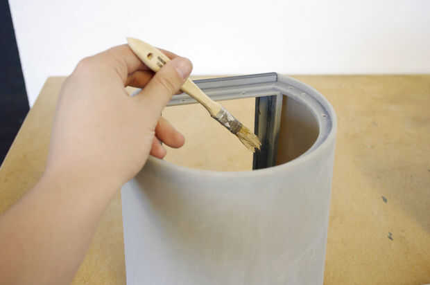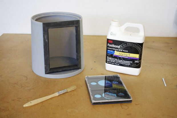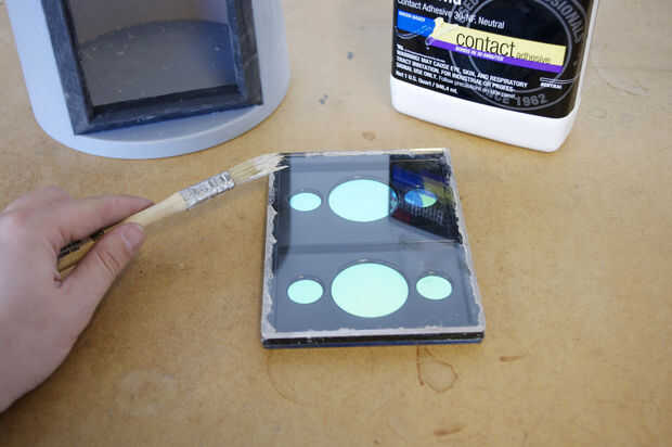 Cubrir también los bordes de la Asamblea de lente y 1/4" de la frontera exterior con adhesivo de contacto.