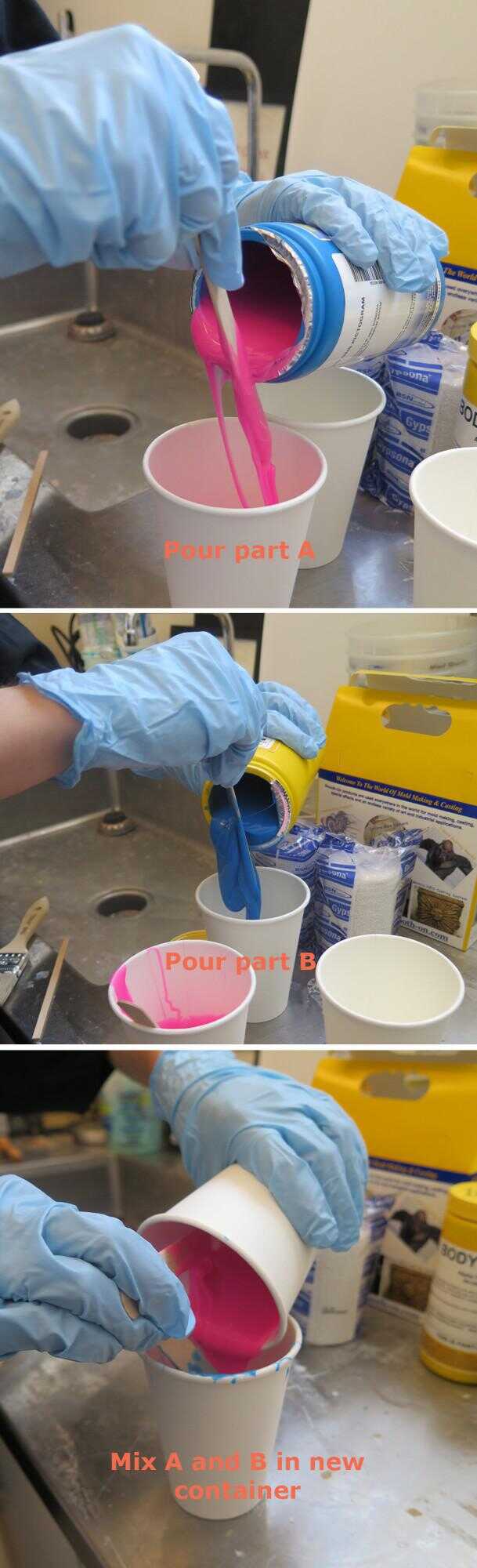 Mientras que la primera capa está curando comienzo mezclando para la segunda capa de silicona.