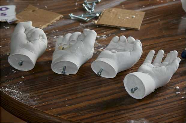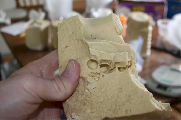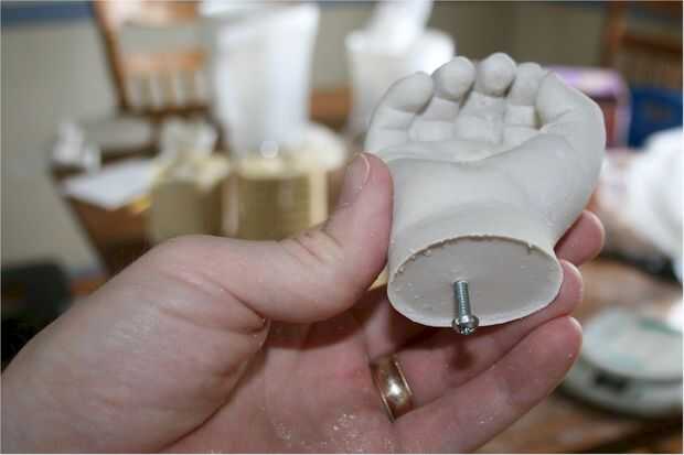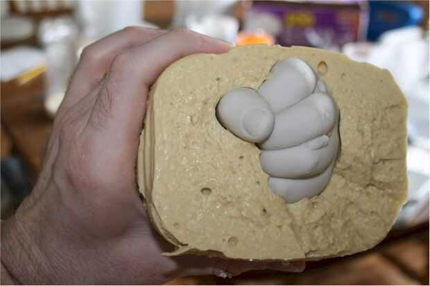 Supe entonces que yo no sería capaz de eliminar las manos sin rasgar el molde o dañar las manos. Además, el movimiento de la escayola en el molde puede dañar algunos de los detalles del molde, así que elegí en su lugar, haga cortes en el molde y desgarrar para remover la fundición.