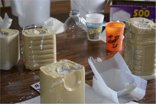 Si no te importa dañar este casting, y tienes una muy buena idea de donde dentro del molde de la fundición es que usted puede convertirlo en un molde de dos partes reutilizables. Corte cuidadosamente a lo largo del borde del molde hasta llegar al bastidor interior. Añadir unos cortes irregulares por lo que será fácil volver a alinear el molde otra vez durante el próximo vertido. La cuchilla cortará el casting que fundición un poco de poco y el futuro tendrá una línea de la parte donde se corta el molde. Asegúrese de que puede quitar un lado de la otra sin rasgarse y separe las dos mitades del molde aparte. Quitar el bastidor y examine y limpie el molde para el próximo casting. Usted tendrá que apoyar el molde externamente (otra botella, o tal vez las tiras de tela o de cinta que no se corte en el molde). Tenga en cuenta que el molde se va a secar y reducir significativamente en las próximas 24 horas, así que no durará por mucho tiempo, y cada bastidor podría dañarlo un poco más.