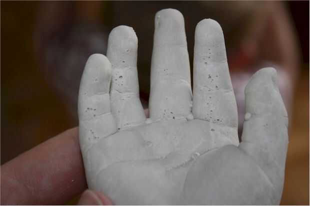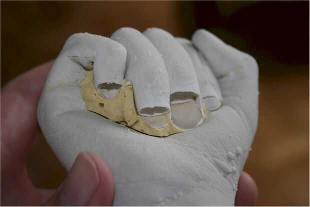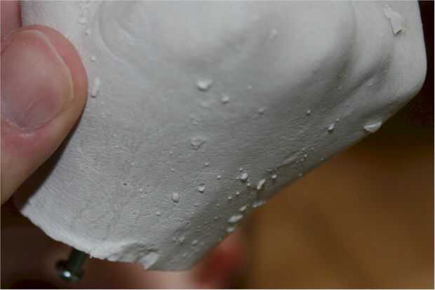 Burbujas de aire en el molde se muestran como protuberancias en el casting. Esto podría se han reducido en el moldeado compuesto con cuidado para no introducir más aire de mezcla, tirando de un vacío en el recinto para llevar las burbujas a la superficie (va la espuma, así que asegúrese de que usted está preparado para un desastre) y tener el modelo de moverse por lo que el compuesto se adhiere al objeto, causando las burbujas para formar el modelo , en lugar próximo a él. Quité el más grande de éstos de la fundición por pellizcos con un juego de alicates. Un archivo, papel de lija o herramienta rotatoria con una fresa funcionaría así aunque pierdes detalle el material más que quita. Este es por lejos el problema más común y uno de los más fáciles de fijar. Aún así, asegúrese de que retorcerse los dedos y mover la mano mucho antes de mantener la pose durante el moldeo.