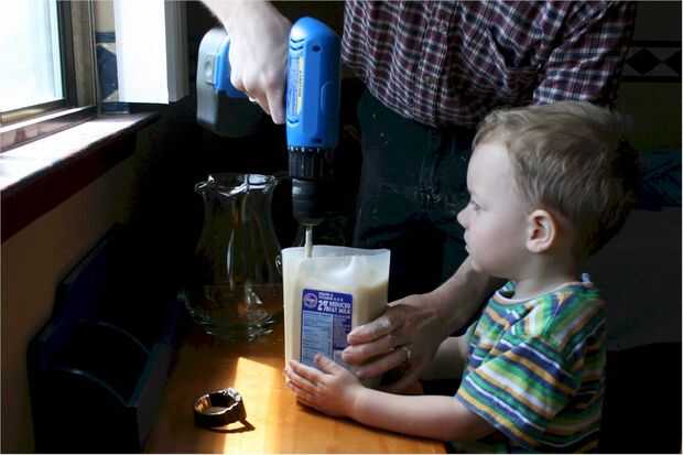 Alternativamente, rapeando firmemente el envase contra la tabla debe traer para arriba muchas burbujas, así.