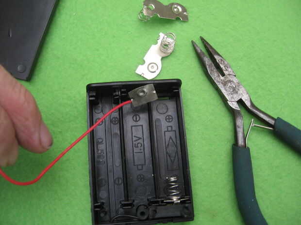 El cable rojo positivo necesita ser movido sobre a una nueva posición para la fuente de energía celular de AA.