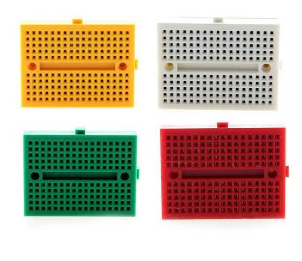 El pequeño 170 lazo puntos (10 x 17) colorido breadbreadbords mostrado arriba puede tentar, pero su compra puede ser una cuestión y (incluso cuando hacia los lados) son demasiado (por ~ 4 m m) para la ranura de.  Además les falta molesto valioso rieles de alimentación y tierra.