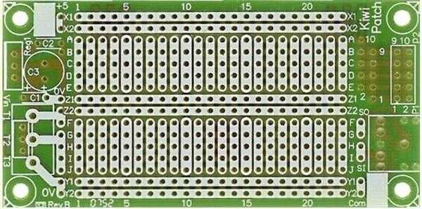 Aunque podría utilizarse la veroboard/placa perforada o un PCB dedicado, llamado "Kiwi parche Junta" trajes soldado definitivo. Coincide con solderless breadboards y es serigrafía facilita la "pintura por número" al levantar los componentes y enlaces sobre de la protoboard domesticada. Naturalmente su perfil inferior permitirá taller componentes se encuentra también, y los carriles adicionales en el centro de la "canal" dan de la conveniencia.