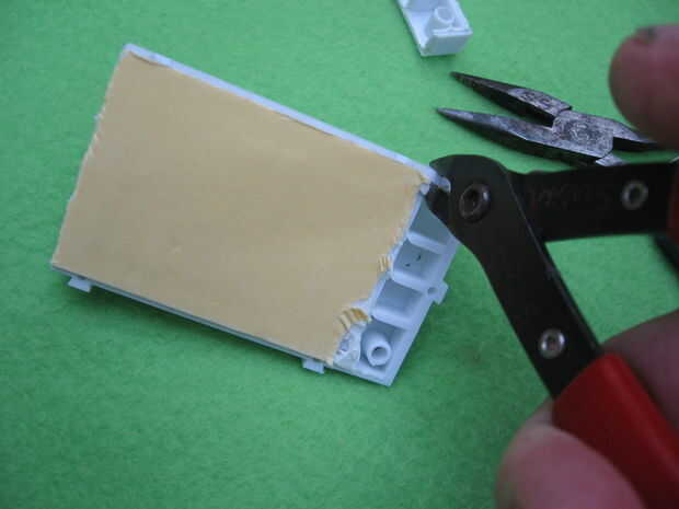 Comenzar por revelar las "alas" (sólo normalmente utilizadas para el montaje) en los extremos del tablero. Utilice cortadores resistentes para cortar a través de ' las costillas de plástico y doble apagado.