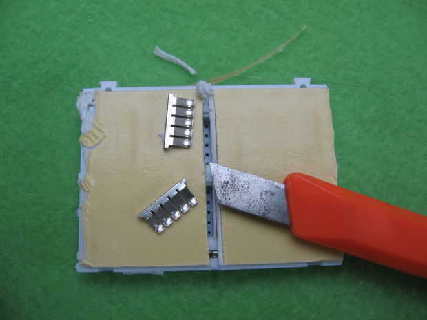 Utilice un scapel para cortar a ' la parte inferior del forro en la columna 12 a revelar las 2 abrazaderas. El corte es mucho más fácil y más con estas eliminado