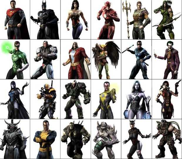 Descubrí que mucha de la injusticia: entre nosotros carácter imágenes de Dios tenían poses realmente agradables. El Wiki de injusticia enumera todos los personajes y tiene imágenes que son fáciles de seguimiento.