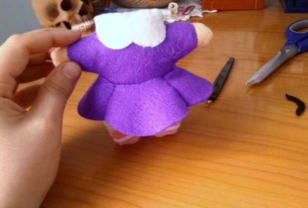 Puede utilizar una puntada manta para coser la falda por si desea. Pero el pegamento caliente parecía funcionar bien para mí. Sólo en las secciones e ir poco a poco por lo que aún permanece.