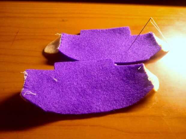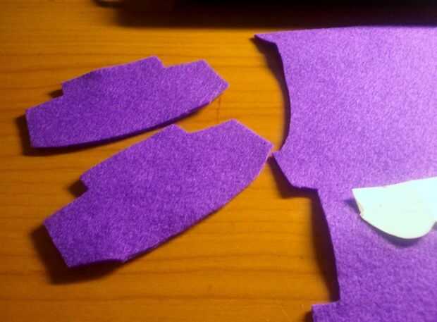 La parte superior la mitad del cuerpo, trazar en púrpura sintió dos veces y cortar las piezas (ver foto 1)