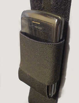 Coser un bolsillo para un teléfono celular, cámara digital, o todo lo que llevas, utilizando elásticos de un más viejo par de tirantes, o puede comprar elástico de la tienda de yardage. Preste mucha atención a qué lado llega el Velcro, como bucles alrededor y caras lejos del teléfono. Ver las fotos.