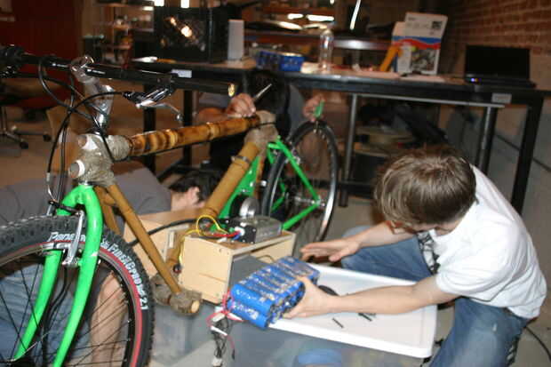 Montaje de la transmisión: aquí está la rueda dentada trasera compramos: http://electricscooterparts.com/sprockets.html artículo # SPR-2590 cuál es agradable sobre este piñón es que rosca directamente en la rueda trasera de una bicicleta. Esto es impresionante. Sólo destornillar cualquier cassette es de la rueda y tornillo a ese bebé. Coloque la rueda trasera con la rueda dentada y el motor, asegurándose de que la línea de cadena es evidente. Que tenga para la fabricación de un tensor de cadena para mantener la cadena de la horquilla trasera. A continuación, conecte la fuente de alimentación y el controlador. Le sugerimos elaborar una caja de la batería y luego unen con la estructura, en lugar de conectar directamente la batería. Usted entonces puede atornillar el regulador a la parte superior de la caja de batería. El acelerador compraste debe deslizarse bien sobre el manubrio, se debe adjuntar también en este punto.