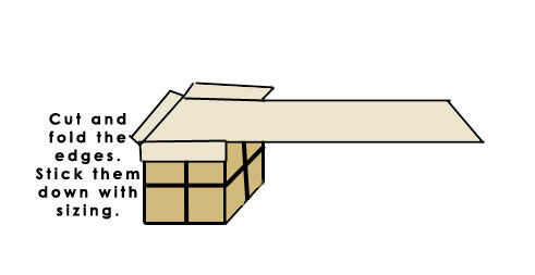 Coloque el cubo en una superficie protegida (o uno que no importa!) y la mezcla de pegamento en la madera de la pintura, asegurándose de conseguir tres adyacentes las secciones que están en una línea recta (como superior, lado derecho e inferior). Cuentan con una ayuda de pareja Coloque la primera pieza de muselina sobre tres lados del cubo. Alise a la tela a partir de la mitad del lado del cubo, trabajando hacia el exterior. Puede que necesite aplicar el apresto adicional para obtener la muselina a pegarse correctamente, pero no intentar sumergirlo en esta etapa. Cuando la tela está en su lugar, utilice el cuchillo para cortar a la tela en las esquinas y doblar hacia el lado adyacente, usando una pequeña cantidad de apresto para sostenerla en lugar. Repita con la siguiente pieza de muselina para terminar envolviendo el primer cubo. Deje que los cubos se sequen completamente antes de proceder al siguiente paso.