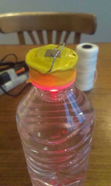 1. Añadir alguna cinta aislante alrededor de la tapa de la botella para ocultar todos los componentes eléctricos y cartón