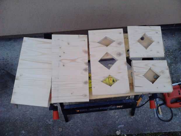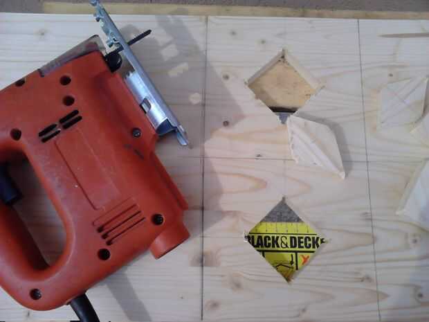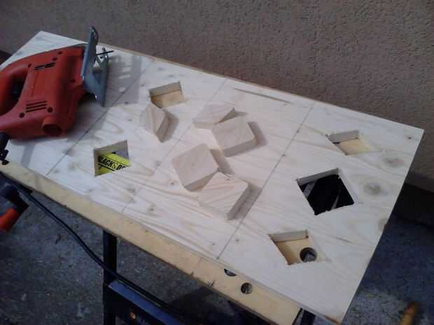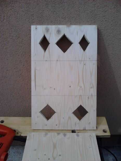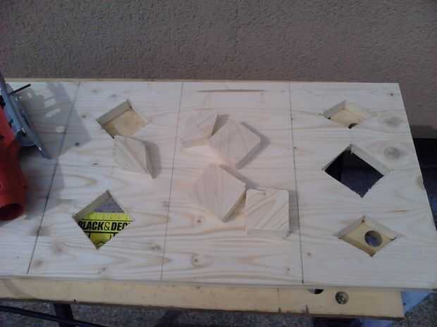 Primero llamo los "planos" de las partes en la hoja de madera. Pero para la seguridad si usted trabajando con electrónica herramientas que debe usar una gafas protectoras y guantes. Después de perforé un agujero para cada formas cada rincón. Facilita el corte con la sierra caladora. Después de cortar los agujeros desmiembra las hojas. Así que ya tengo a los lados. Después de cortar o hacer algo con valor madera para pulir las piezas. Eliminar las aristas. (Es importante ya que usted debe hacer esto antes de que usted conserva en vinagre o pintar o barnizar la madera). es una pequeña pista: podemos utilizar el cortado partes como soporte para el papel de lija como te cn verlo en la última foto.