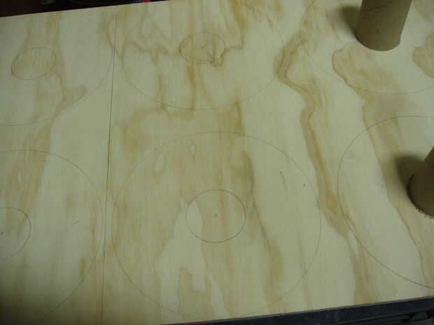 Utilizando la brújula, coloque el diámetro externo y rastro 8 círculos en su 1/4" madera contrachapada.