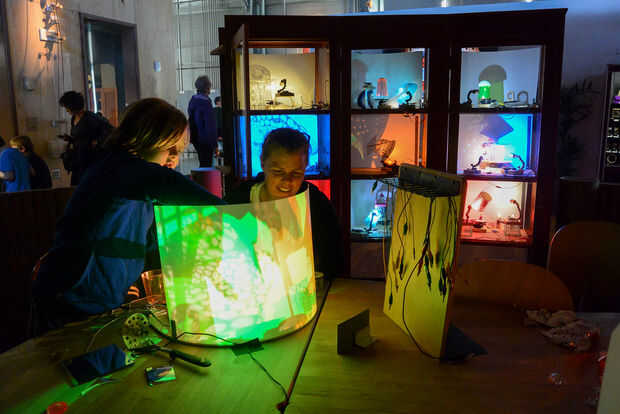 Juego de luz es una actividad en el estudio de ajustes que te permite explorar la luz, sombra y movimiento usando una variedad de materiales sencillos y fuentes de luz. Partir de exploraciones guiadas suavemente de sombras, simples y múltiples fuentes de luz, objetos tridimensionales y translucidez, participantes ganan la competencia y el "vocabulario de luz" para expresar sus ideas y su creatividad se despertó. Trabajar hacia la construcción cinética luz y sombra viñetas y eventualmente combinarlas en una instalación colaborativa.