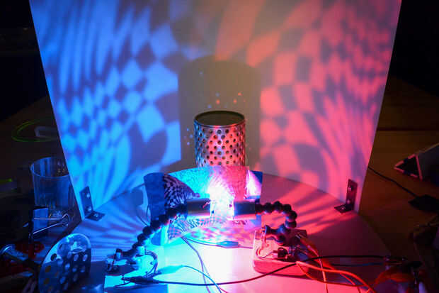 Ahora que su kit de juego de luz, es tiempo de experimentar con todos los materiales que han recogido. Coloque unas luces y objetos en la base y observe las sombras en las pantallas. Trate de objetos que se mueven más cerca y más lejos de la fuente de luz, ver si puede mezclar los colores con los filtros, o notar cómo mueven los objetos 3D y cambiar en una plataforma giratoria accionada por un motor de movimiento lento.