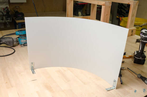 1. Línea L-Brackets a la pantalla y la etiqueta donde van los agujeros.