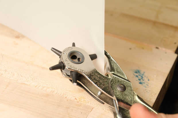 2. Realizar los orificios en el plástico. Utilizamos un punch de cuero pero también se puede utilizar el taladro.
