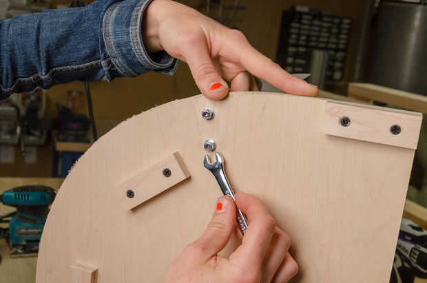 3. Coloque los pernos a través de los soportes en L y apretar y ajustar los pies en caso de errores.