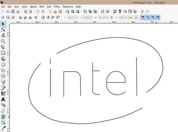 Primero instalar inkscape y dibujar algo sencillo con la herramienta línea (mi dibujo del logo de Intel se adjunta)